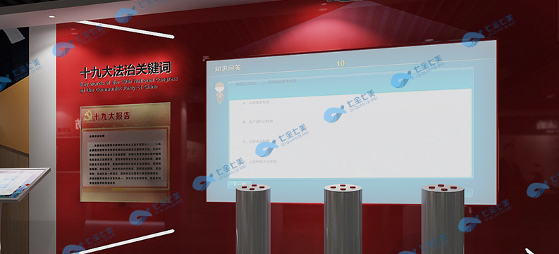 山東法制文化展館展廳建筑面積480平方米,山東法制文化展館方案以憲法為全部布展內(nèi)容,集場(chǎng)景復(fù)原、雕塑、平面展示等形式于一體的展館。運(yùn)用法治文化長(zhǎng)廊,開拓法治宣傳陣地,在社區(qū)布設(shè)法治文化長(zhǎng)廊,全方位、多層面宣傳涉及群眾生活方方面面的法律法規(guī)。通過標(biāo)牌、宣傳欄、漫畫故事等簡(jiǎn)單易懂的形式,使法律知識(shí)融入群眾生活,將先進(jìn)的聲光電技術(shù)手段與通過圖片案例、實(shí)物模型展示、語音視頻播放、場(chǎng)景模擬、互動(dòng)體驗(yàn)、答題闖關(guān)等傳統(tǒng)的版面展示相結(jié)合,方式,讓青少年在參觀體驗(yàn)過程中猶如身臨其境,親自參與、親身體驗(yàn)、親歷過程,集趣味性、知識(shí)性和教育性為一體,讓青少年在參觀體驗(yàn)過程中無形學(xué)到知識(shí)、接受教育,打破了以往教育基地的參觀模式讓參觀體驗(yàn)活動(dòng)變得豐富、生動(dòng)、有趣,對(duì)青少年具有很強(qiáng)的吸引力,教育效果明顯。進(jìn)行以案施教、以案釋法、以案明紀(jì),去年累計(jì)為213家單位、8700余人提供警示教育服務(wù),產(chǎn)生了良好的社會(huì)效應(yīng)。在潛移默化中增強(qiáng)了群眾的法治意識(shí)。